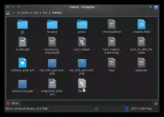 要创建一个 .desktop 启动文件,打开一个文本编辑器并创建一个名为 twine.desktop 的文件。桌面条目规范 由 FreeDesktop.org 定义。下面是一个简单的启动器,用于一个名为 Twine 的游戏开发 IDE,安装在系统范围的 /opt 目录中: