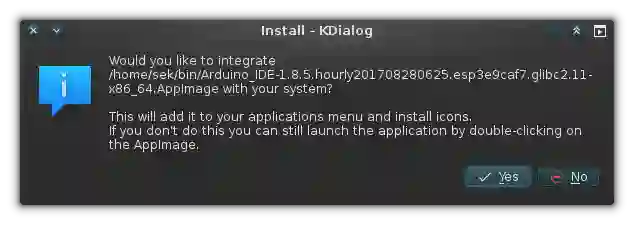 如果你接受此条件,则将一个本地的 .desktop 文件安装到你的主目录。.desktop 文件是 Linux 桌面的应用程序菜单和 mimetype 系统使用的一个小配置文件。实质上,只是将桌面配置文件放置在主目录的应用程序列表中“安装”应用程序,而不实际安装它。你获得了安装某些东西的所有好处,以及能够在本地运行某些东西的好处,即“便携式应用程序”。