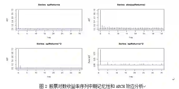 从股票的收益率时序图中可以看出:股票收益率具有波动集聚和杠杆效应。