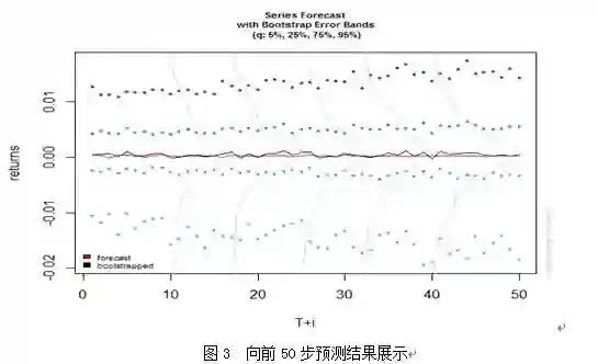 (4)将参数寻优后的ARIMA模型设定为EGARCH(1,1)模型的均值方程,利用组合模型进行后一天股票收益率预测。
