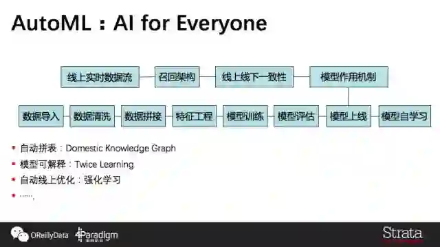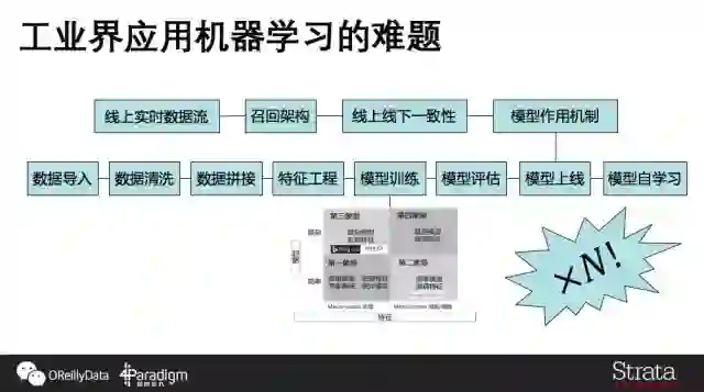 比如,数据需要归集、整理、导入、清洗、拼接、特征工程等之后才能模型训练。之后模型上线还要保证系统的稳定性、时效性和吞吐等等指标。同时为了提供线上服务,需要重做一套线上的架构,这个架构需要保证数据流实时性、线上线下一致性,以及模型作用的机制。只有完成这些,这样才真正拥有了一个落地的人工智能系统,否则只能称之为在笔记本上做一个AI的玩具而已。