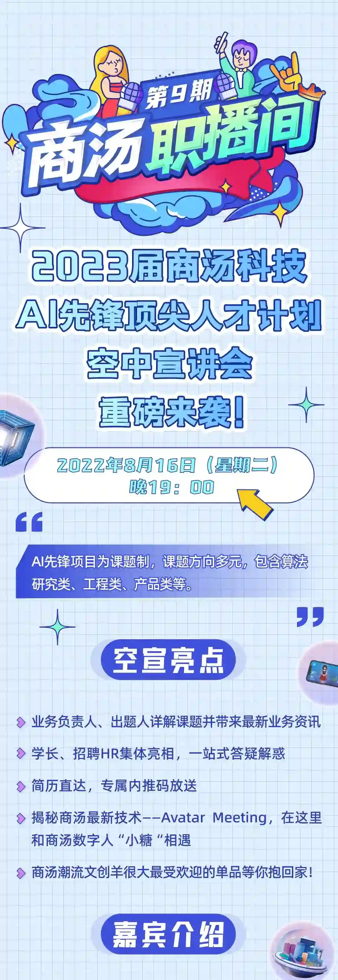 商汤科技2023届AI先锋顶尖人才计划空中宣讲会重磅来袭!