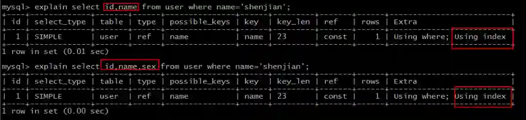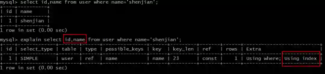 提示,如果你不清楚explain结果Extra字段为Using index的含义,请阅读前序文章:《如何利用工具,迅猛定位低效SQL?》