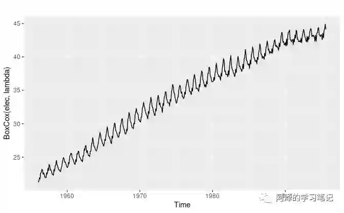 选择好变换后,我们还需要利用逆变换得到原始测度上的预测值,逆 Box-Cox 变换如下表示: