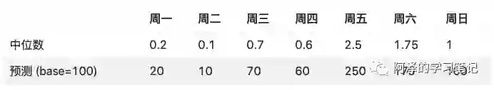 这样我们就可以取最后三天的平均,(108+91.4+120)/3=106.5,作为 base。具体取多少天的,也要通过测试集的表现来确定。当然也可以按某些函数形式来给每天赋予不同的权重。