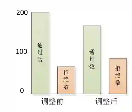 审批通过率监控主要是监控模型的使用效果,审批通过率应该与分数成正比,分数越高,审批通过率越高。