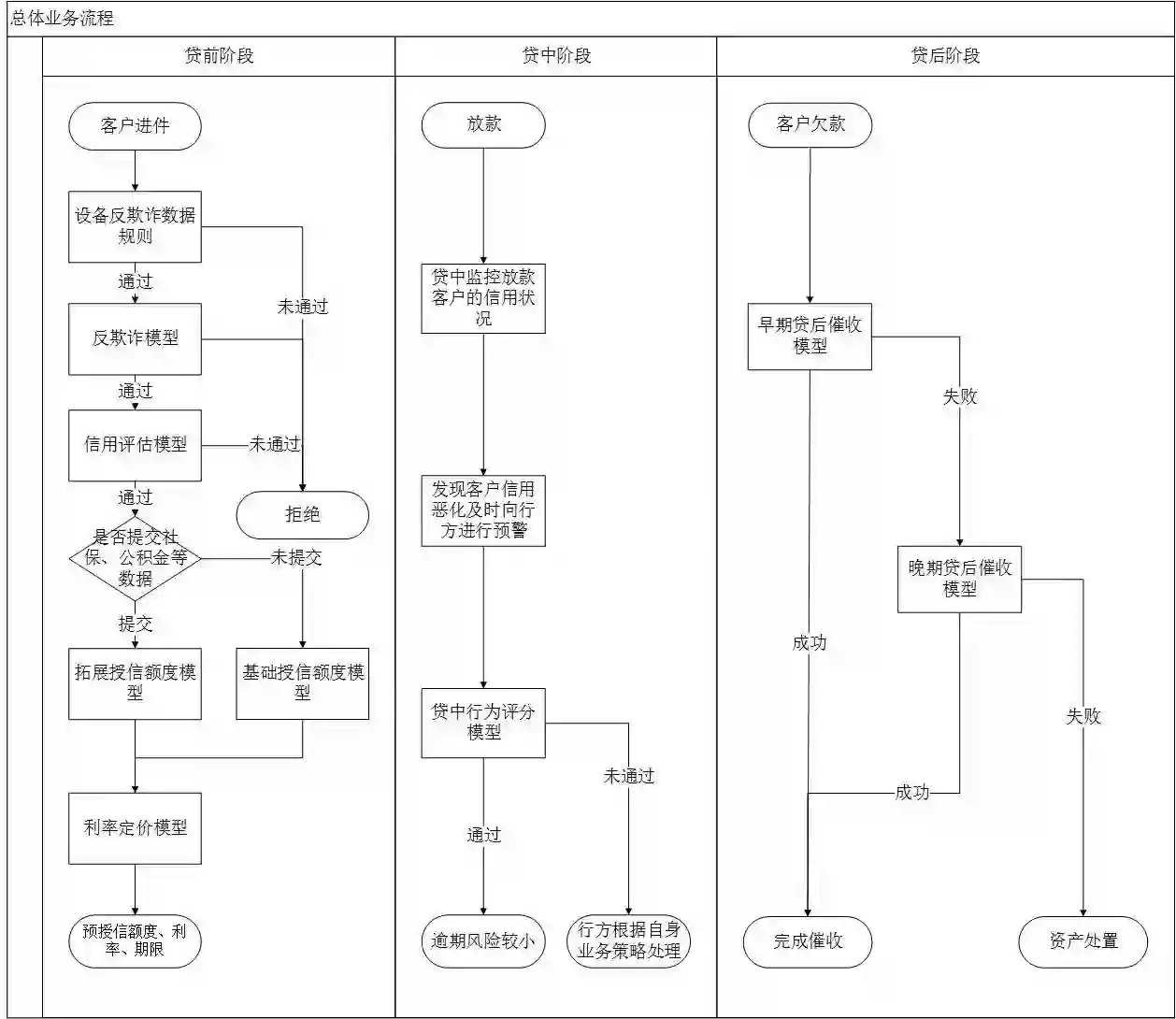 在贷后阶段,大数据催收对传统催收模式有颠覆性变革,利用大数据科技手段充分挖掘逾期客户个人资产价值,通过早期催收模型、晚期催收模型识别个人信贷客户潜在风险与价值。以此协助客户解决逾期、不良管控的顽疾,降低委外催收成本,同时实现风险管控的前移,早发现,早管控,早催收,及时止损。