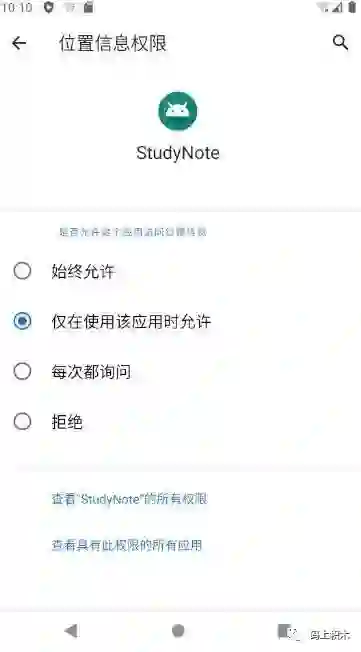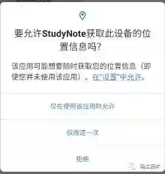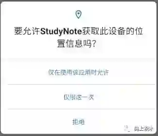 的选项,只供这一次权限获取。然后用户下次打开 app 的时候,系统会再次提示用户授予权限。这个影响应该不大,只要我们每次使用的时候都去判断权限,没有就去申请即可。放一张新版本权限获取样式: