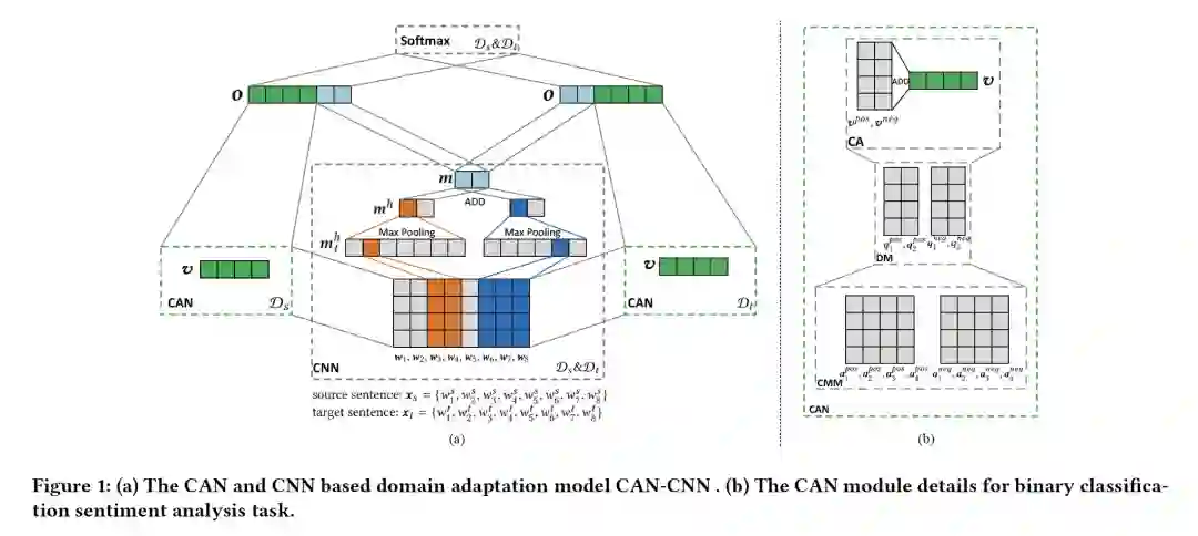摘要:跨域情感分类等领域自适应任务旨在利用源域中已有的已标记数据和目标域中未标记或很少的标记数据,通过减少数据分布之间的偏移来提高目标域的性能。现有的跨领域情感分类方法需要区中心点(pivots)(即领域共享的情感词)和非中心点(即领域特定的情感词),才能获得良好的自适应性能。本文首先设计了一个类别注意网络(CAN),然后提出了一种将CAN和卷积神经网络(CNN)相结合的CAN-CNN模型。该模型一方面将中心点和非中心点作为统一的类别属性词进行自动捕获,提高领域自适应性能;另一方面,对迁移后的类别属性词进行可解释性学习的尝试。具体地说,该模型的优化目标有三个不同的组成部分:1)监督分类损失;2)类别特征权重的分布损失;3)领域不变性损失。最后,在三个舆情分析数据集上对所提出的模型进行了评估,结果表明CAN-CNN的性能优于其他各种基线方法。