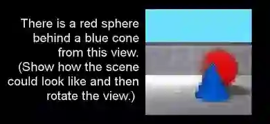 在上图所示的例子中,SLIM根据描述,生成一个红色球体摆放在蓝色圆锥后边的场景,还能够旋转着展示这个场景在不同角度、不同距离看起来的样子。