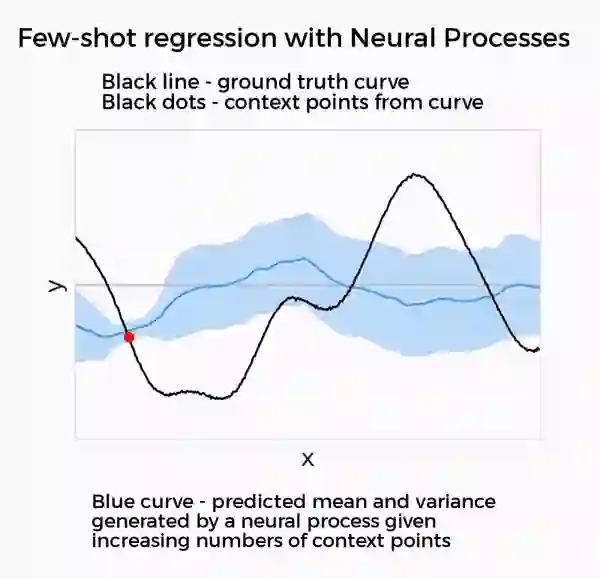 DeepMind认为,GQN创造的训练机制很不错。于是,他们在最新的两项神经过程(Neural Processes)研究中,将这种训练机制泛化到了回归、分类等其他小样本预测任务上。