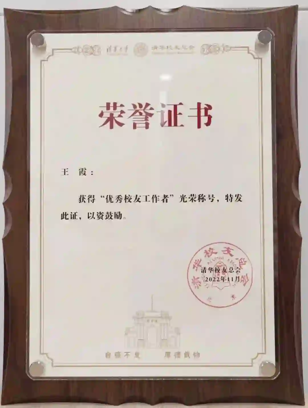 清华校友总会AI大数据专业委员会秘书长王霞荣获“优秀校友工作者”称号。