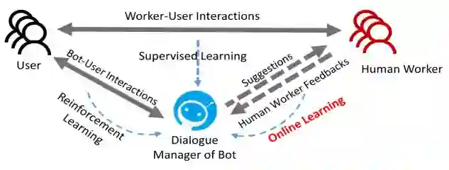 在聂再清一篇 2018 年 AAAI 录用论文中,他提出一个聊天机器人人机协作框架 CoChat,该框架可以让人类工作者随时干预机器人的学习过程,机器人能够通过从标注过的对话日志、人类工作者的反馈以及用户的反馈中学习,由此使对话质量获得持续改进。换句话说,CoChat 结合了监督学习(标注日志)以及有延迟奖励 / 反馈的强化学习(人类工作者/用户反馈),可以持续不断地自我完善。