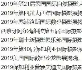 收费较高的国外沙龙类比赛,特别是非主流国家的,以及含有“世界”、“大师”、“杰出”、“艺术”、“沙龙”、“巡回”等夸张词汇的外国收费摄影比赛。