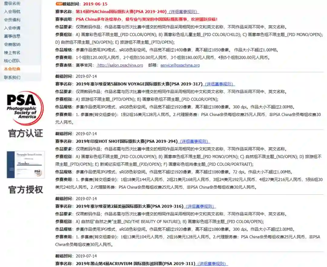 一些国外沙龙协会(如PSA)举办的收费比赛,特别是很多非主流国家协会举办的收费比赛,以及名字还带有“大师”、“世界”、“皇家”等等夸张词汇的,比如什么美国大师协会摄影奖、世界皇家摄影联盟年度摄影十杰这种,一般不太建议去参加。