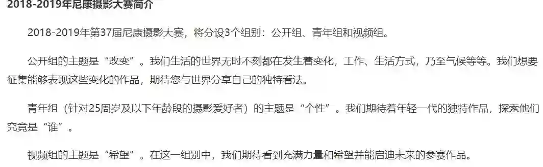 有的比赛要求公开组只能是非职业摄影师参加。有的比赛还为高校学生专门设置了分组。这些都需要看清。