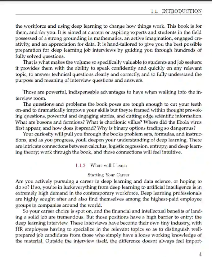 这本书的内容是大量的关于DL工作面试和研究生水平考试的主题。这使得这项工作处于科学发展趋势的最前沿,教授一套核心的实用数学和计算技能。人们普遍认为,每一个计算机科学家的培训都必须包括ML的基本定理,而人工智能几乎出现在每一所大学的课程中。这本书是为这类项目的毕业生设计的一个极好的参考: