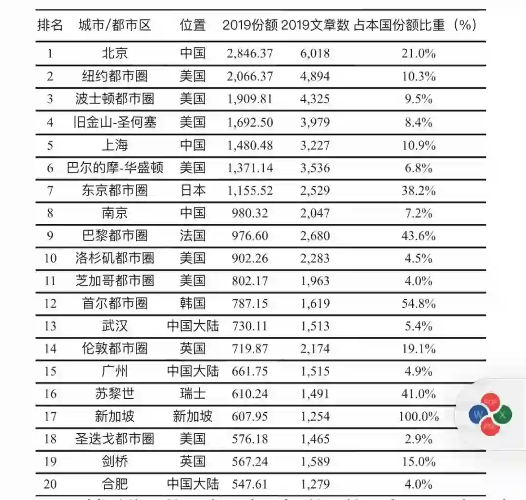 9 月 19 日,自然指数(NatureIndex)创始人戴维·斯文班克斯在 2020 中关村论坛发布会上发布的“自然指数-科研城市2020”最新数据和研究成果显示,北京在全球科研城市中继续蝉联第一,纽约都市圈、波士顿都市圈、旧金山-圣何塞地区和上海分列第 2 至 5 位。