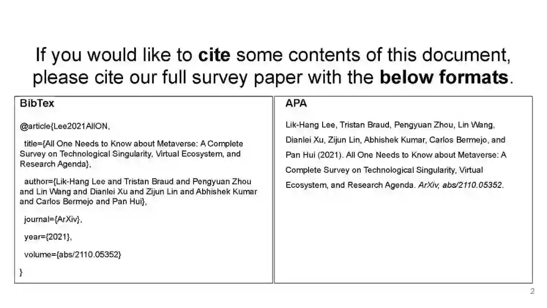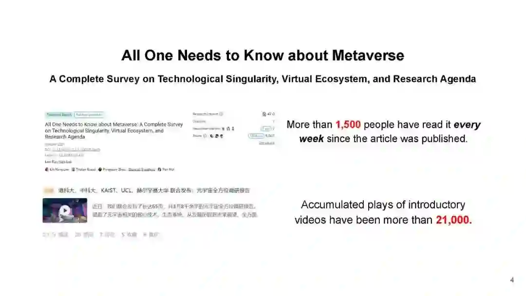 韩国先进科学技术研究所、香港科技大学AR/VR顶级专家,发表元宇宙(技术、虚拟生态系统、研究进程)综述论文(66页pdf、149页PPT)。