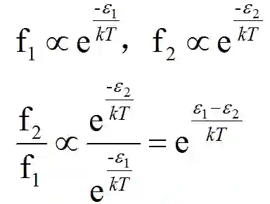根据玻尔兹曼分布,粒子处于ε1与ε2的概率f1与f2有如下关系: