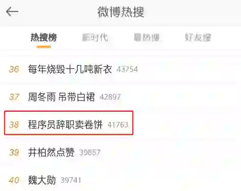 近日“程序员辞职卖卷饼”火了,前几天早上还上了微博热搜。