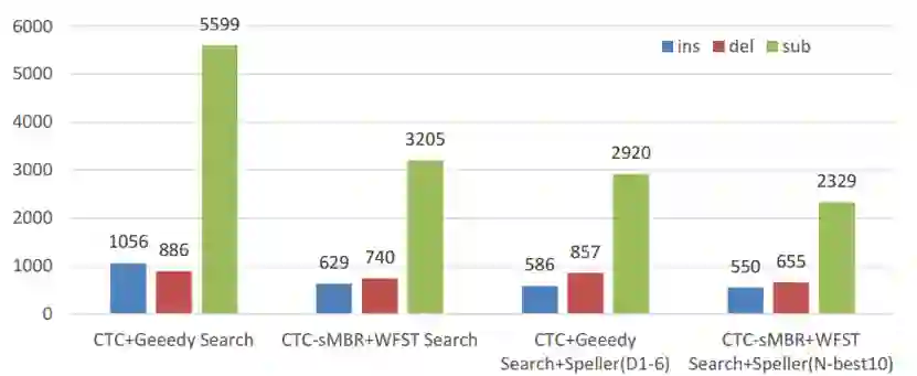 通过对识别错误类型的统计,研究者进一步发现,通过添加纠错模型可以极大地降低识别过程中的替换错误。