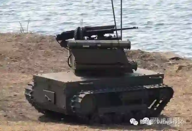 “暗语”轮式战斗机器人。该型机器人采用8×8全地形车底盘,正面安装有整体式防护装甲,战斗全重一吨,长3.35米,宽1.85米,高1.65米。动力系统为柴油发动机,一次加油可以连续工作20小时;陆地最大行驶速度20千米/小时,水上最大航速4.6千米/小时;武器系统包括一挺7.62毫米机枪、三具RPG-26反坦克火箭筒和两部RShG-2榴弹发射器。该型机器人主要用于山地、水网地形作战,还可为海军陆战队登陆作战提供火力支援。