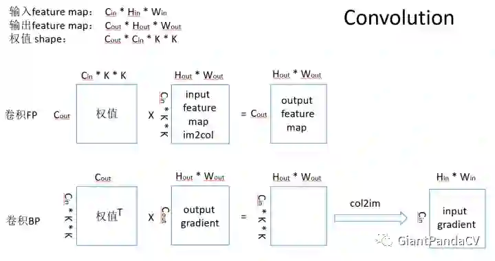首先左上角定义了输入和输出的feature map的形状,假设卷积核大小是 ,所以权值的形状就是 。