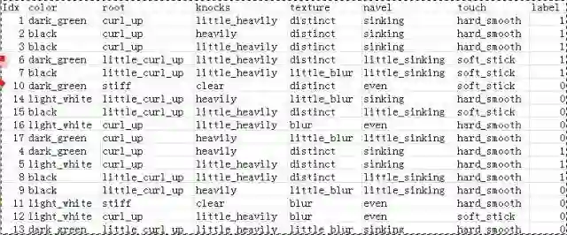数据参照 《机器学习-周志华》 一书中的决策树一章。
