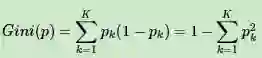在分类问题中,假设有K个类别,第k个类别的概率为pk, 则基尼系数的表达式为: