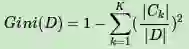 对于给定样本D,假设有K个类别, 第k个类别的数量为Ck,则样本D的基尼系数表达式为: