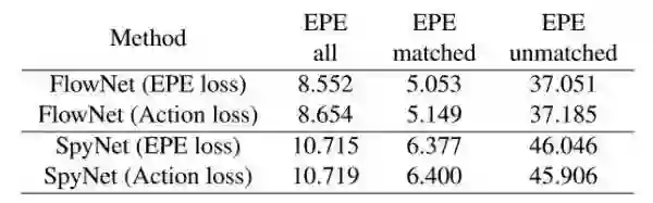 使用action loss来fine tune光流,光流本身的精度基本不会下降