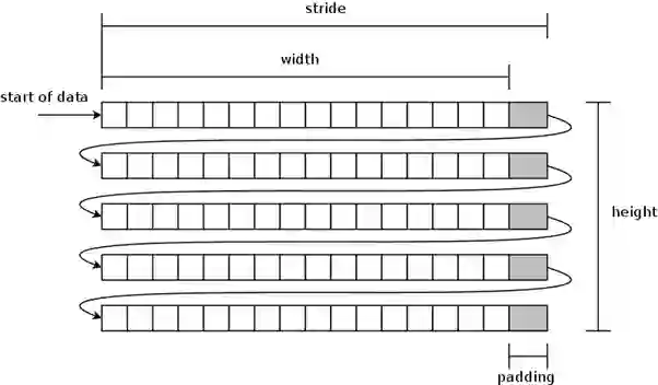 主存和缓存的最小数据交换单元是cache line, 所以访问内存的地址最好是按照cache line的大小进行,这样可以保证最高效的数据访问。比如某台机器cache line大小为64Bytes,申请一个128Byte的内存区域,将它的开始地址放在非64Byte对齐的位置,如0x80000020,那么访问这128Byte需要3条cacheline的访问, 若放在0x80000040, 则只需要2条cache line, 一般通过多申请一点点内存,来避免这种不对齐,比如用posix_mem_align() 函数;更近一步,为了对齐访问,有时需要对图像的边界做一些padding的,比如 224x224的图片,我们可能会存储在256x224的内存地址中,保证在随机访问某一行时,地址处于对齐的位置。如: