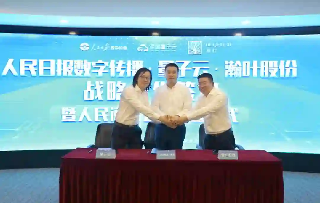 今天(7月5日)上午,人民日报数字传播、量子云、瀚叶股份于人民日报社新媒体大厦签署战略合作协议,同时宣布三方合资公司——人民阅读有限责任公司(以下简称人民阅读)正式成立。