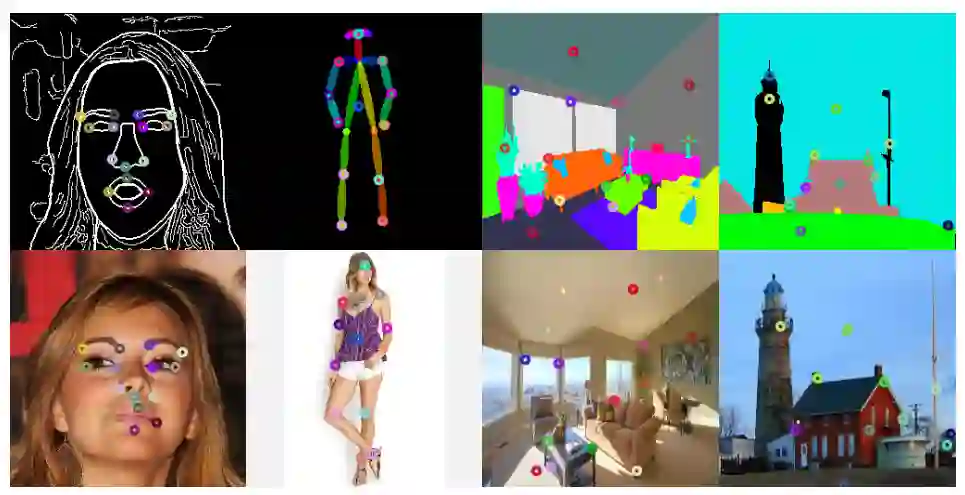 我们的方法首次建立了跨域图片的密集对应关系,而这种对应关系完全通过弱监督学习得到。在图8中,我们手工选择了若干关键点,他们均在自然图片中找到了准确的对应。