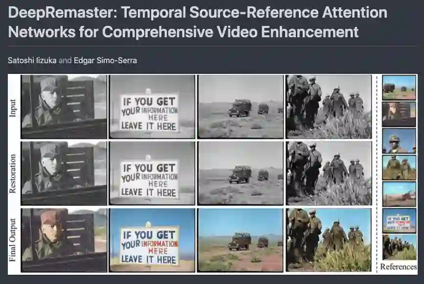 日本筑波大学和早稻田大学的两位研究者合作提出了基于注意力机制的时间卷积神经网络的单一框架,以半交互的方式处理所有重制任务,使用全卷积网络实现对老旧影像的修复。