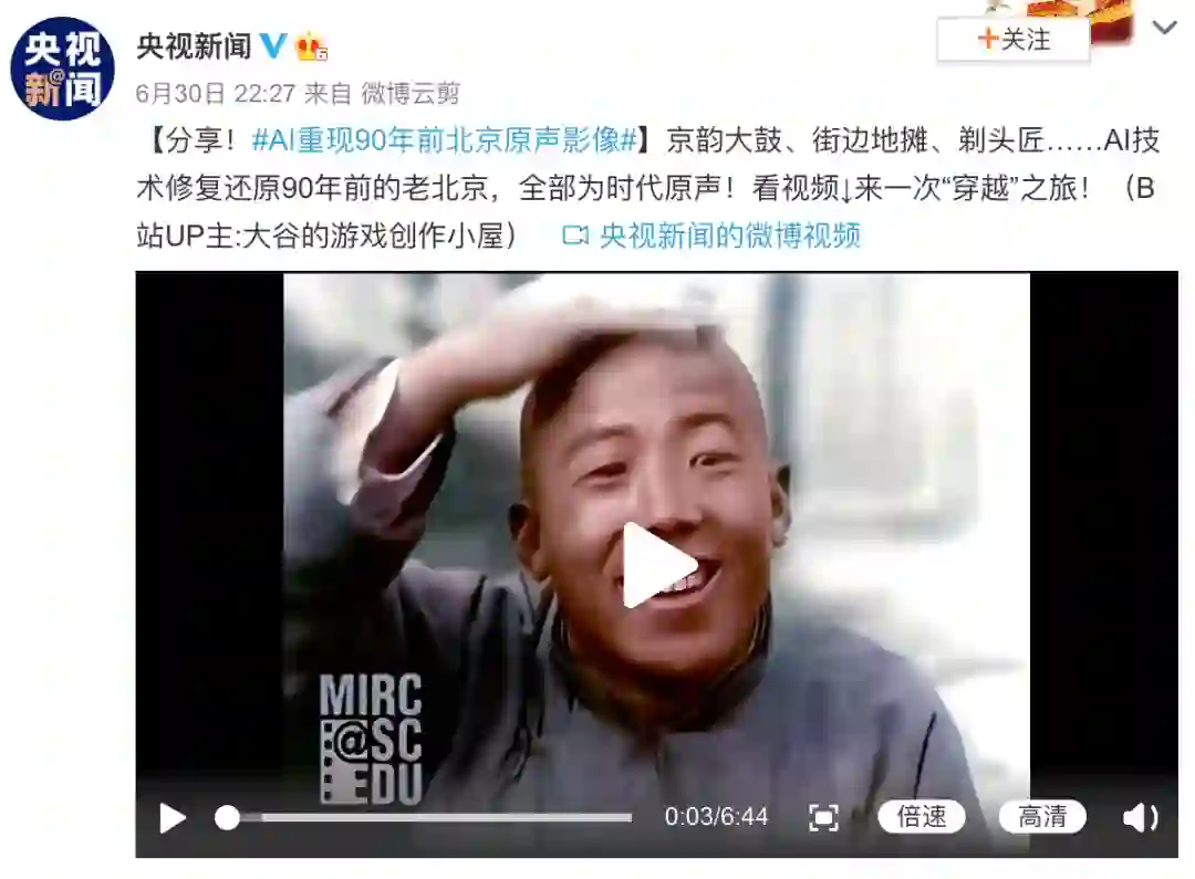 最终,央视新闻也看上了他,和小哥联手又搞出了AI复原第二集:AI重现90年前北京原声影像。