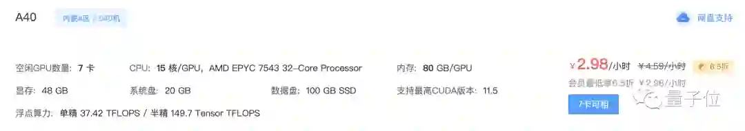 按会员价,春节期间一个划算的选择是英伟达A40,2.98元*24小时是71.52元,用完抵扣券还有富余。