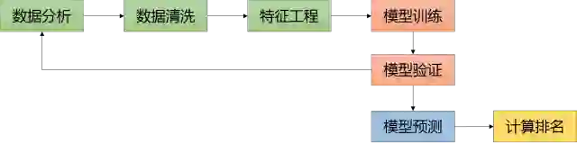 一个数据挖掘比赛的基本流程如下图2所示,具体的模块我将在下一章进行展开陈述。