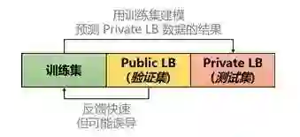 这个过程可以概括如下图3所示,其目的是避免模型过拟合,以得到泛化能力好的模型。如果不设置 Private LB(即所有的测试数据都用于计算 Public LB),选手不断地从 Public LB(即测试集)中获得反馈,进而调整或筛选模型。这种情况下,测试集实际上是作为验证集参与到模型的构建和调优中来。Public LB上面的效果并非是在真实未知数据上面的效果,不能可靠地反映模型的效果。划分 Public LB 和 Private LB 这样的设置,也在提醒参赛者,我们建模的目标是要获得一个在未知数据上表现良好的模型,而并非仅仅是在已知数据上效果好。