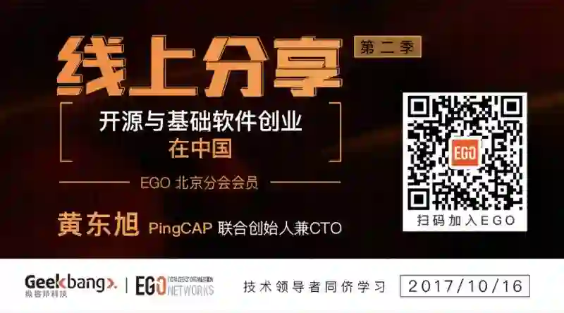10 月 23 日,EGO 北京分会会员、PingCAP 联合创始人兼 CTO 黄东旭作为 EGO 线上分享第二季嘉宾,与超过 400 位 EGO 会员交流了自己在开源软件和创业方面的感悟。本文根据口述内容整理。