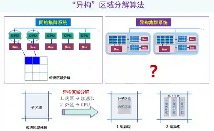 例如求解偏微分方程的经典并行算法——区域分解算法,该算法一般假定每个子区域应该是大致相同,而且满足一些数学上的条件,例如子区域应具有凸性和的单连通性等。在异构系统上,这些前提假定已经难以成立,需要从思想上突破传统算法的约束。