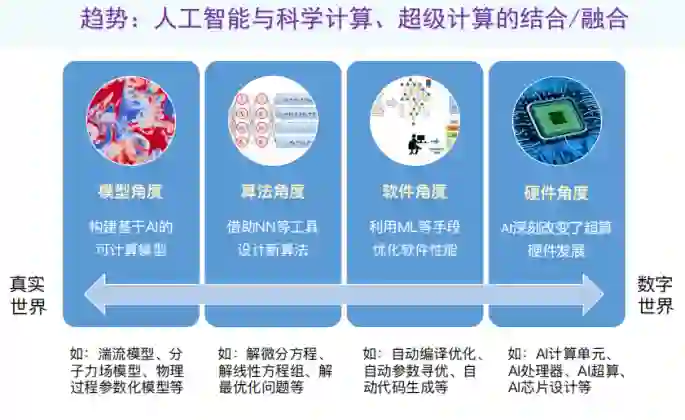 如前所述,科学计算和超级计算之间相互促进、共同发展的闭环已经形成了几十年了。最近十来年随着大数据兴起,人工智能技术得到复兴并呈爆发式发展。此时,人工智能作为一个“新”角色进来之后又起什么作用呢?