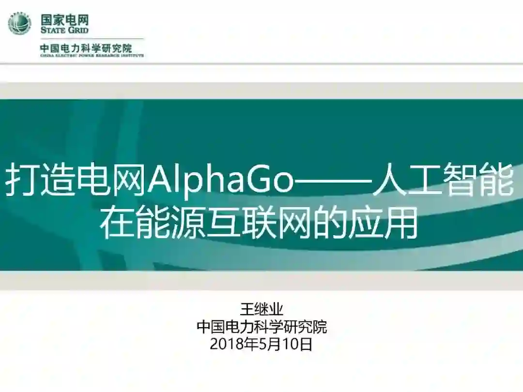 会上,中国电力科学研究院有限公司副总经理(副院长)王继业作了题为“打造电网AlphaGo—人工智能在能源互联网的应用”的报告,小编征得王院长同意,与您分享。