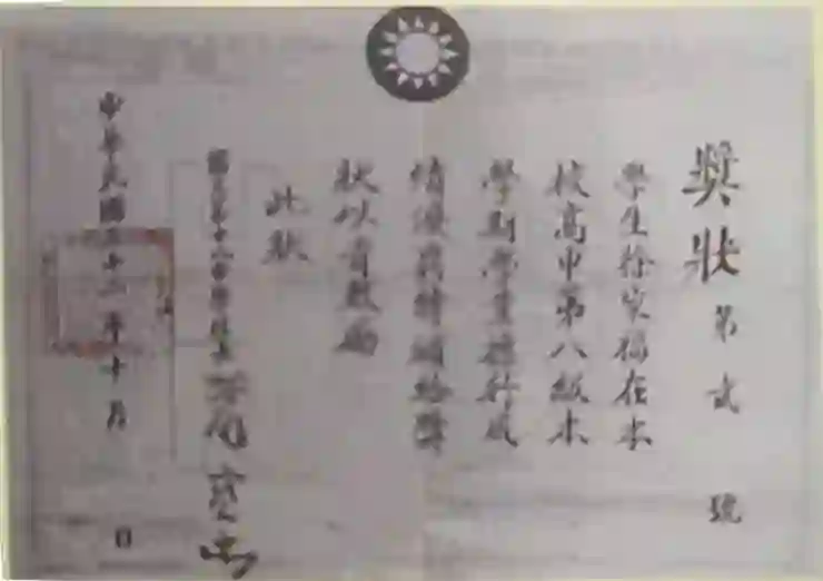 徐家福中学时期的奖状
