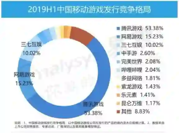 易观报告显示,腾讯、网易、三七互娱三强卷走了近八成移动游戏市场份额。