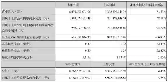 归属于上市公司股东的净利润10.33亿元,同比增长28.91%。