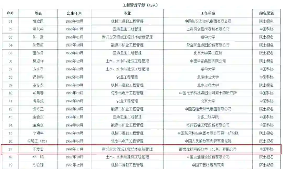 4 月 30 日,中国工程院官网发布 2019 年院士增选有效候选人名单,百度 CEO 李彦宏上榜,引发热议。