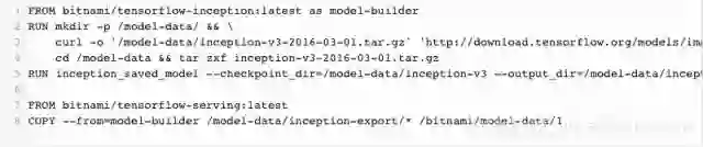 步骤二:将步骤一准备好的模型数据复制到图像上,供TensorFlow Serving使用。所以,最终输出为一个Docker镜像,它包含了预先 打包好的所有东西。因此,我们可以使用一个docker run…命令为我们的机器学习模型服务。如果这不是一个好的协同策略,那么它什么都不是。从一个机器学习新手的角度来说,使用单个命令运行机器学习是一个很不错的方法。