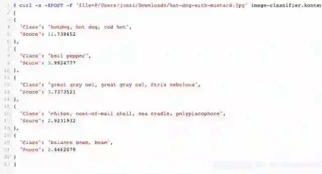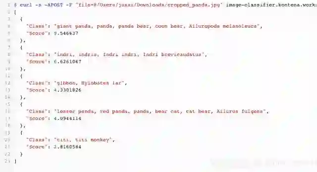 在TensorFlow模型前使用简化的API,那么,使用普通的curl就可以很容易的测试图像分类: